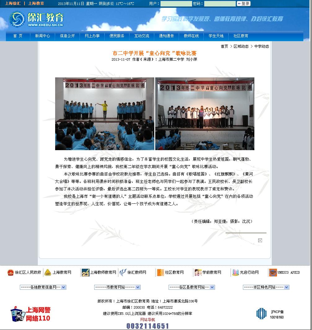 徐汇教育网新闻报道图文:上海市第二中学开展“童心向党”歌咏比赛