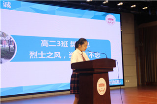 在《开学第一课》上,来自高二2班的王诗晴同学与高二3班的樊思思同学分别分享了他们的暑期实践经历。王诗晴同学告诉大家,7月12日至13日,冒着酷暑烈日,她与高二年级的顾世丞、吴明、李文杰等4名同学在校团委书记陈伊萍老师的带领下,前往王蕙炎老人与王荟芗老人家中开展访谈活动。王蕙炎奶奶是市二中学退休教师,她认为要教育子女“知足常乐”,希望我们同学能做“儿童时使父母快乐,少年时给父母带来希望,长大后成为父母依靠的人”。湖南街道退休干部王荟芗奶奶为上海市民办日日学校等多所中小学建立奖学金,多次为灾区人民以及需要帮助的病人提供力所能及的帮助与捐赠。王荟芗奶奶也将爱心与责任心传递给了她的子女和孙女。两位老人谆谆教诲犹在耳际,潜移默化地影响着我们的价值观,提升着我们自身的道德文化修养,传承延续中华民族的传统美德。2017年正值中国人民解放军建军90周年,高二3班团支书樊思思同学组织班级团支部参加暑期“走近边防线”教育实践活动。她在发言中表示:烈士之风,当永矢不忘!团员们前往有“上海雨花台”之称的龙华烈士陵园。一千六百多余名烈士在此长眠,他们用鲜血为中华的独立崛起而视死如归,前赴后继的传递革命火种。团员们深切地感受那段烽火革命的艰辛岁月,缅怀先烈,向每一位为抛头颅洒热血的革命先辈致敬,亦是向涅槃而生的新中国历史致敬。