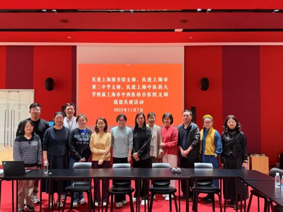 为促进基层组织的横向交流与资源共享,2025年11月7日下午,民进上海市第二中学支部、民进上海图书馆支部与民进上海中医药大学附属上海市中西医结合医院支部在上海图书馆东馆联合开展组织生活,来自教育、文化、医疗领域的会员通过文化体验与座谈交流共促履职能力提升。