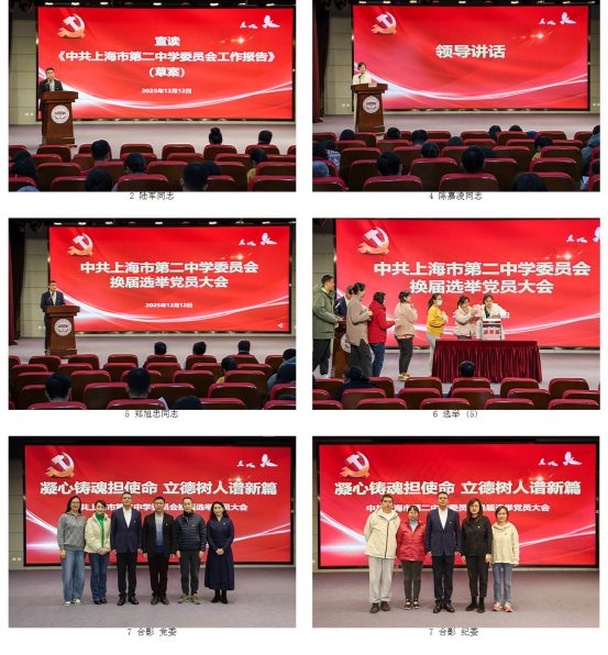 2025年12月12日,中共上海市第二中学委员会换届选举党员大会在庄严的氛围中隆重召开。民主党派教师代表同高中部两校区及初中部党员齐聚一堂,共同擘画学校党建与教育事业融合发展的新蓝图。徐汇区教育工作党委副书记陈嘉凌同志与会指导。
