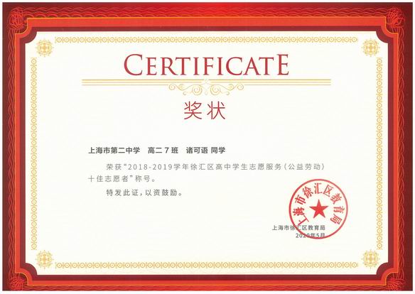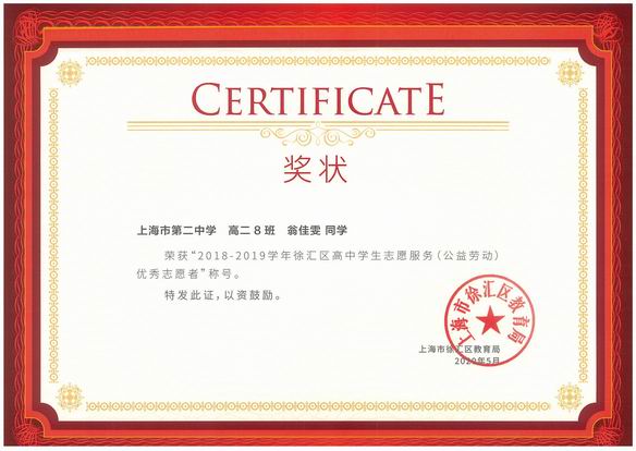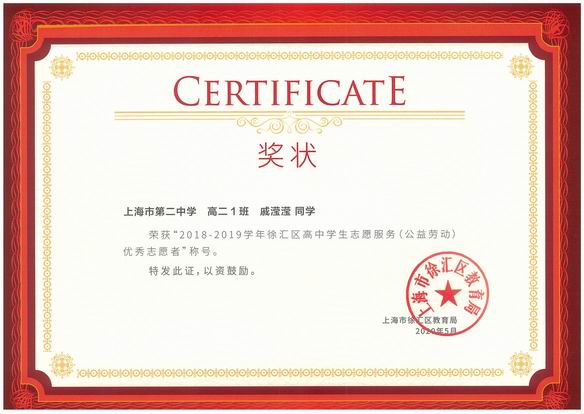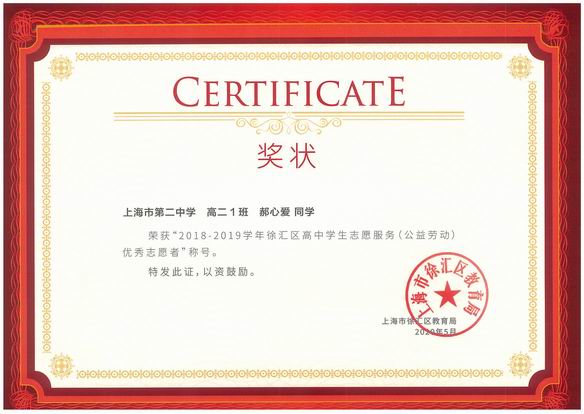 2018-2019学年徐汇区优秀志愿者名录