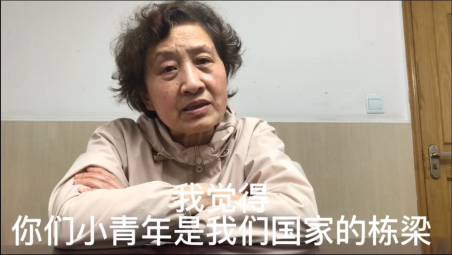 首先,王晓何同学分享了她外婆志愿工作经历。王晓何表示外婆为社区服务后,不仅身心更愉悦,而且更谅解疫情防控的艰辛,用更务实的行动去为社会做出贡献。随后,请出王晓何外婆本人勉励我们青年人正值奋斗年华要努力刻苦学习,将来更好的为国家贡献。告诫同学们要有良好的体魄才能做以上说的话。最后老人用自己亲身经历三年自然灾害告诉我们要珍惜现在的幸福生活。