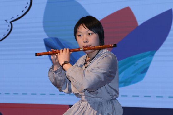第三个节目是乐器串烧,由高一8班晏斯羽、高二9班李昊扬一起演奏。西洋和中国民族乐器融合在一起,一种独特的音色和表现力让现场观众如痴如醉。