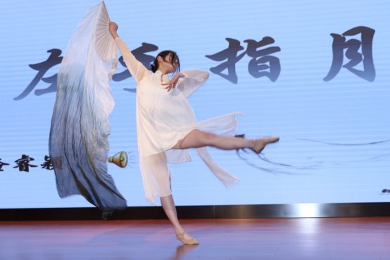 第四个节目是舞蹈《左手指月》,由高一8班的查睿颖带来,观众们都被其优美的舞姿与背景音乐所深深吸引。