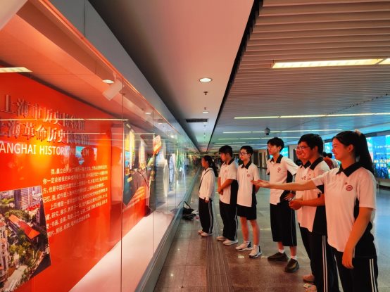 在这条不长的走廊中,浓缩了整个上海历史和海派文化,同学们沐浴在浓郁的人文气息之中,感受上海这座城市“海纳百川、开明睿智”的精神,通过观察历史的变迁,感叹当代中国的发展。